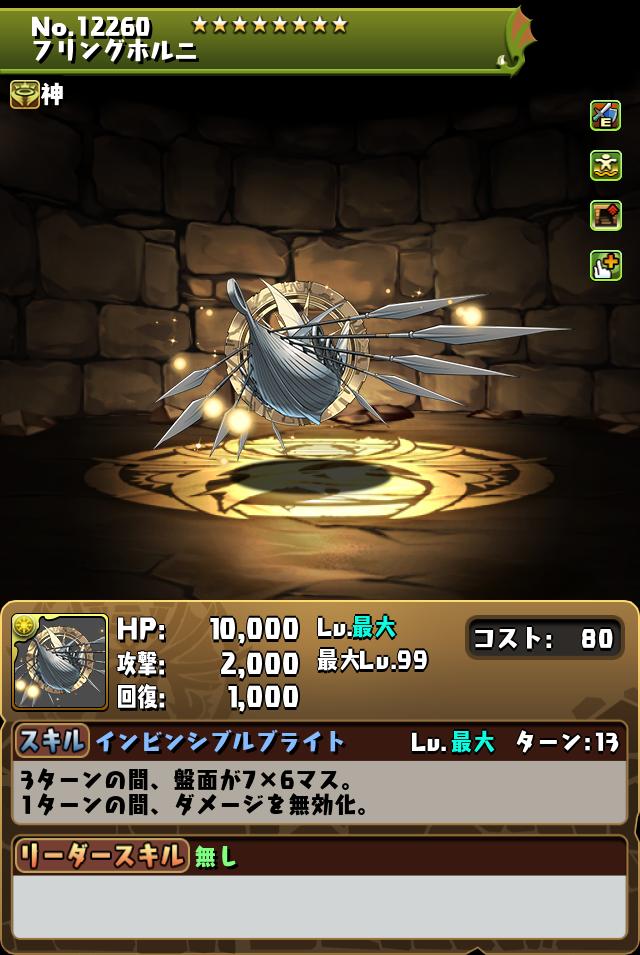 パズドラのフリングホルニの評価と性能を紹介しています。パズドラのフリングホルニのスキルや覚醒はもちろん、ステータスや入手方法なども記載していますので、フリングホルニは強いかの参考にご覧ください。