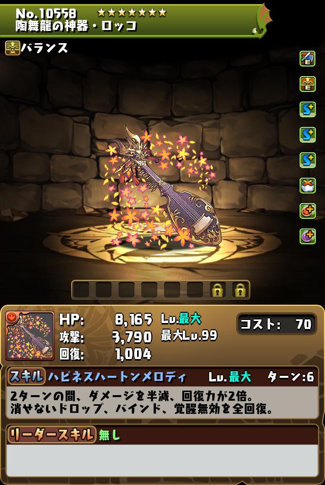 バランスタイプ縛りのパーティ、もしくは新極悪でのHP盛りに活用できる。スキブ3個と雲耐性・ドロップ強化も悪くない。
