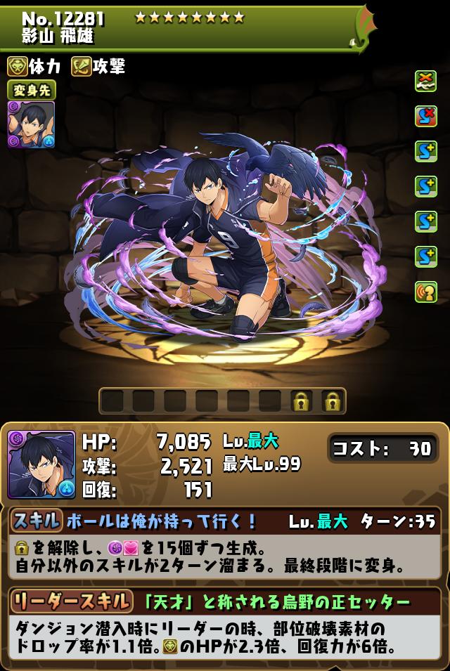パズドラの影山飛雄の評価と潜在覚醒おすすめを紹介しています。パズドラの影山飛雄のスキルや覚醒はもちろん、ステータスや入手方法なども記載していますので、影山飛雄(ハイキューコラボ)は強いかの参考にご覧ください。