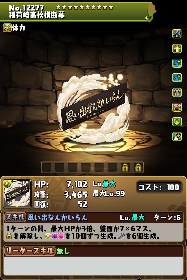 最大HP3倍はピンポイントの大ダメージ防御に役立つ。7×6マスやドロップ生成もあり、特に裏十億チャレンジではボスの先制5×4マスを解消できる。