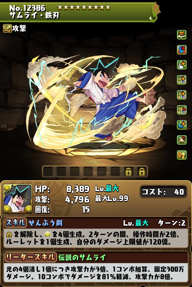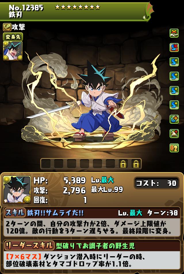 パズドラの鉄刃の評価と潜在覚醒おすすめを紹介しています。パズドラの鉄刃のスキルや覚醒はもちろん、ステータスや入手方法なども記載していますので、鉄刃(コナン&YAIBAコラボ)は強いかの参考にご覧ください。
