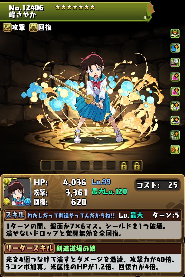 パズドラの峰さやかの評価と潜在覚醒おすすめを紹介しています。パズドラの峰さやかのスキルや覚醒はもちろん、ステータスや入手方法なども記載していますので、峰さやか(コナン&YAIBAコラボ)は強いかの参考にご覧ください。
