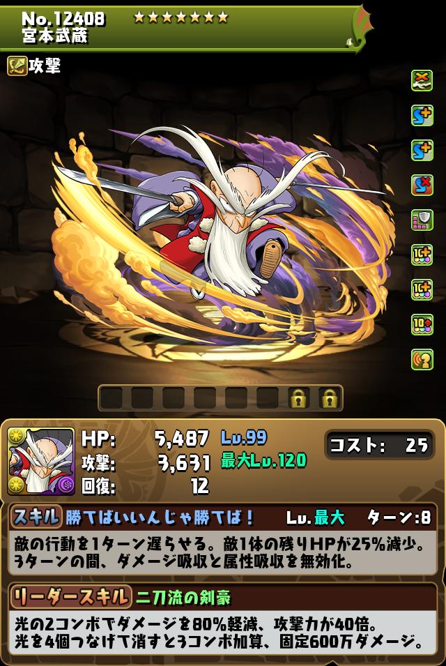 パズドラの宮本武蔵の評価と潜在覚醒おすすめを紹介しています。パズドラの宮本武蔵のスキルや覚醒はもちろん、ステータスや入手方法なども記載していますので、宮本武蔵(コナン&YAIBAコラボ)は強いかの参考にご覧ください。