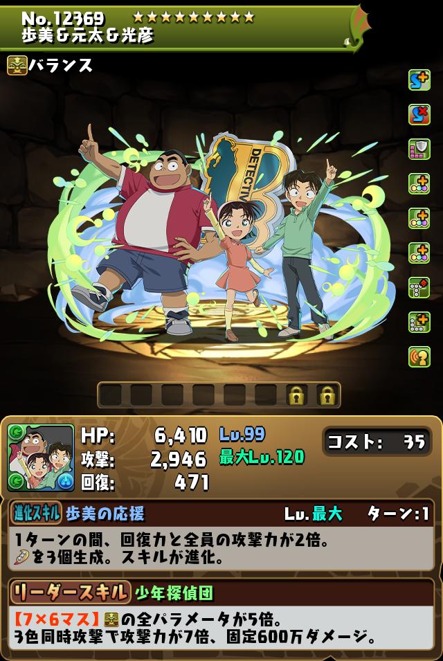 パズドラの少年探偵団の評価と潜在覚醒おすすめを紹介しています。パズドラの少年探偵団のスキルや覚醒はもちろん、ステータスや入手方法なども記載していますので、少年探偵団(コナン&YAIBAコラボ)は強いかの参考にご覧ください。