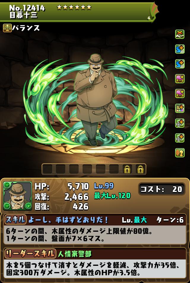 パズドラの目暮十三の評価と潜在覚醒おすすめを紹介しています。パズドラの目暮十三のスキルや覚醒はもちろん、ステータスや入手方法なども記載していますので、目暮十三(コナン&YAIBAコラボ)は強いかの参考にご覧ください。