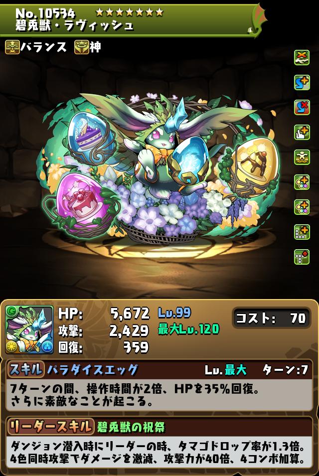 パズドラのラヴィッシュの評価と潜在覚醒おすすめを紹介しています。パズドラのラヴィッシュのスキルや覚醒はもちろん、ステータスや入手方法なども記載していますので、ラヴィッシュは強いかの参考にご覧ください。
