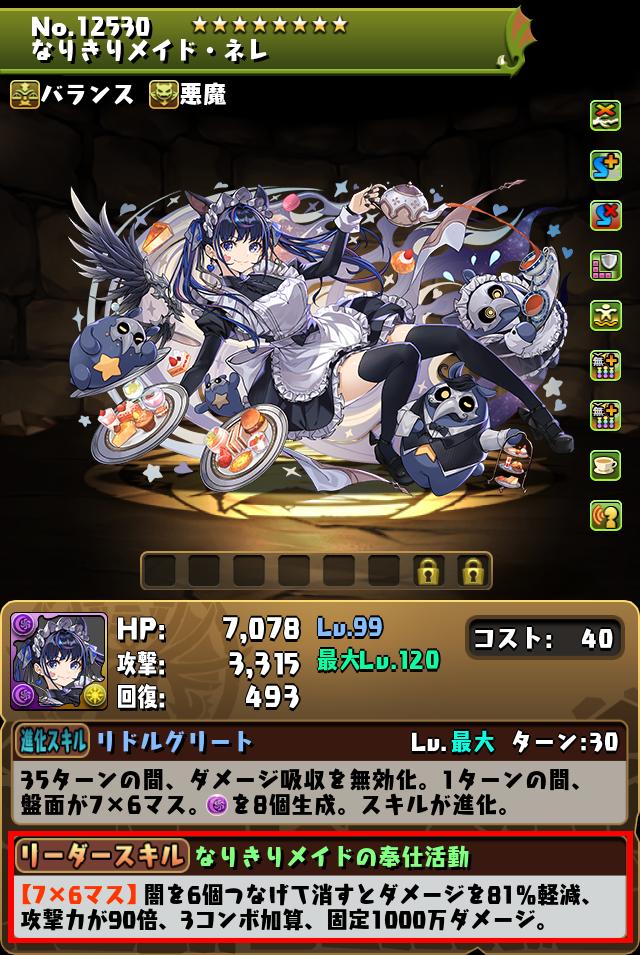 パズドラのメイドネレの評価と潜在覚醒おすすめを紹介しています。パズドラのメイドネレのスキルや覚醒はもちろん、ステータスや入手方法なども記載していますので、メイドネレ(執事とメイドとパズドラカフェ)は強いかの参考にご覧ください。