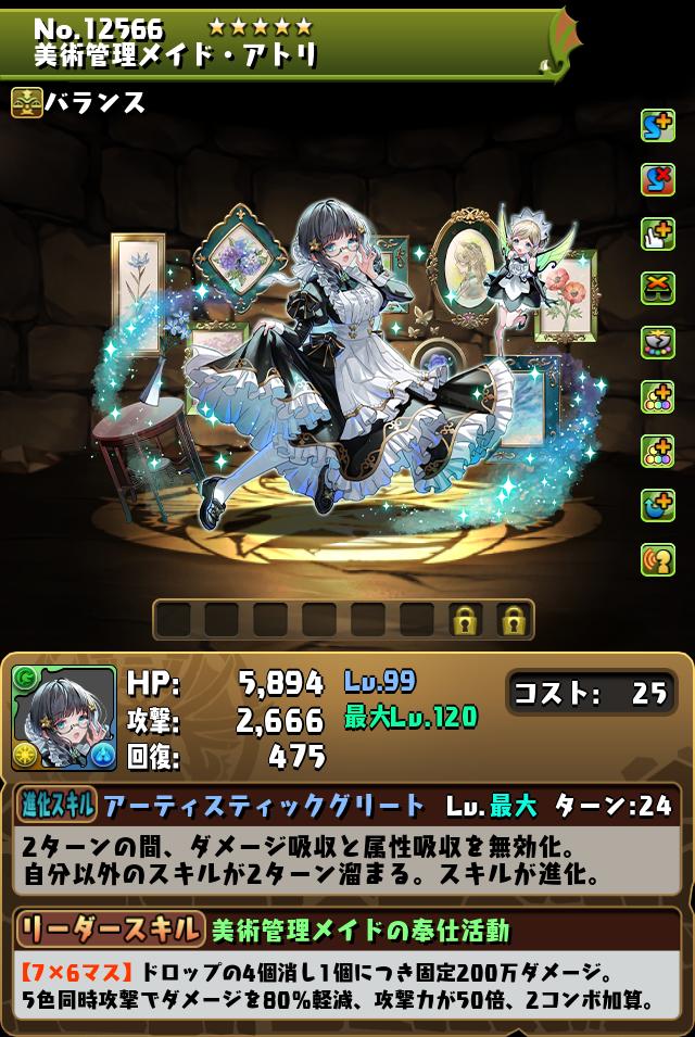 パズドラのメイドアトリの評価と潜在覚醒おすすめを紹介しています。パズドラのメイドアトリのスキルや覚醒はもちろん、ステータスや入手方法なども記載していますので、メイドアトリ(執事とメイドとパズドラカフェ)は強いかの参考にご覧ください。
