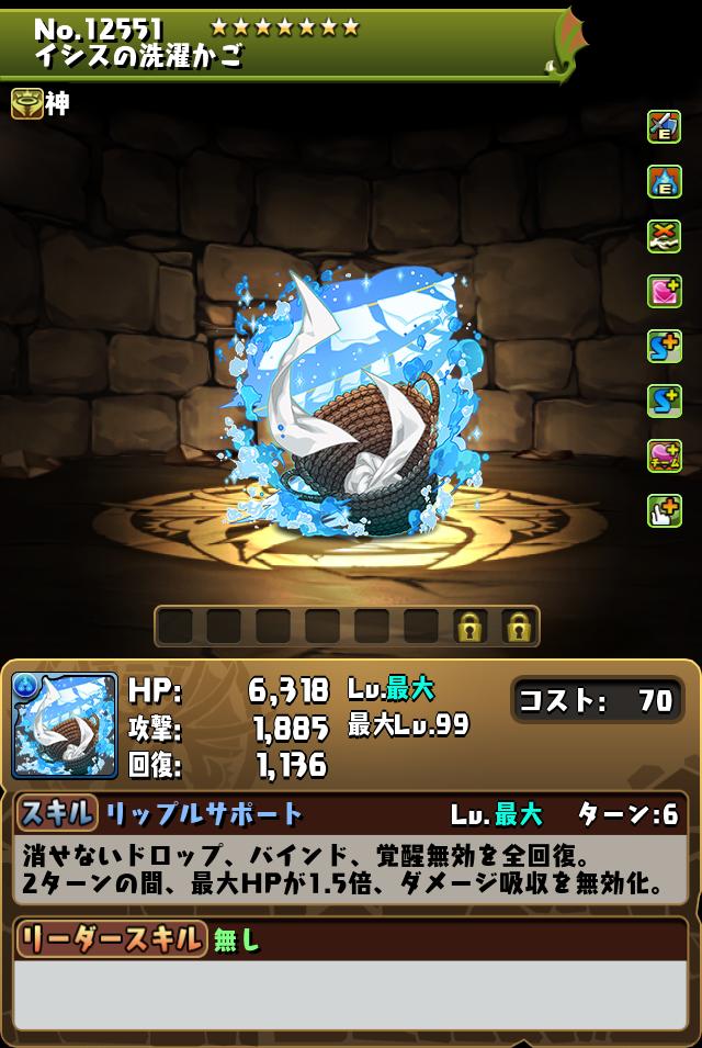 スキブ3個やチームHP強化・回復ドロップ強化を付与し、火力アップはないがサポート面は充実している。