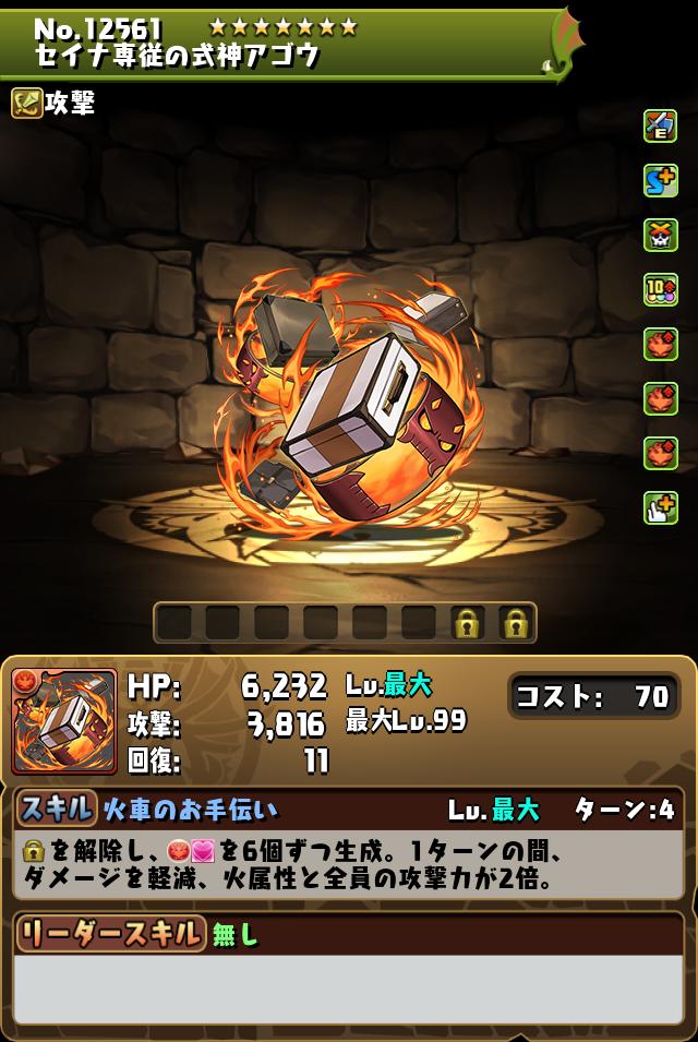 超コンボ強化と火列強化、スキブ2個と完全毒耐性を持ち、火力・サポートの両面でなかなかの性能だと言える。