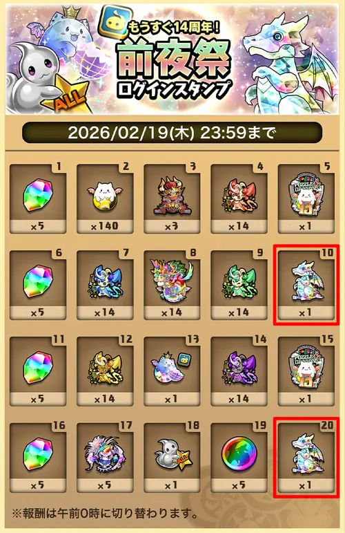 ログインスタンプが2026.1/22(木)に開始し、10日目・20日目にガチャを引ける。