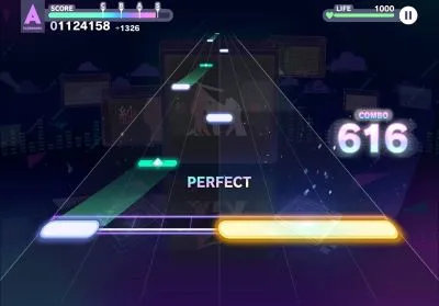 上の列の画像は楽曲の序盤に出てくる配置です。レーンが大きくずれたようなスライドがありますが、持ち替えてしまうとタップノーツが叩きづらくなってしまいます。持ち替えないことを覚えておきましょう。