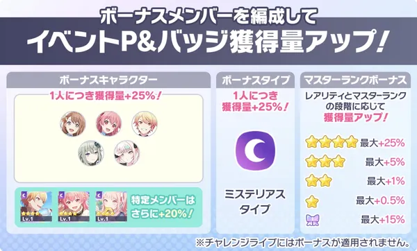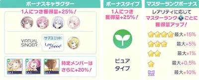 まふゆちゃんバナーのマラソンイベントです。同時開催されるガチャで、イベントボーナスを持つ新登場メンバー3人が衣装付きで実装されています。