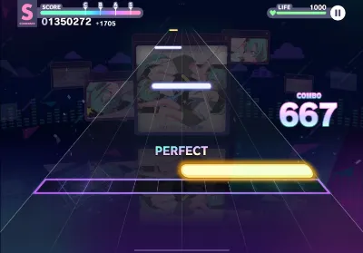 上の列の画像は楽曲の中盤に出てくる配置です。リズムが厄介で難しい譜面となっています。譜面をしっかり見て精度をとりましょう。