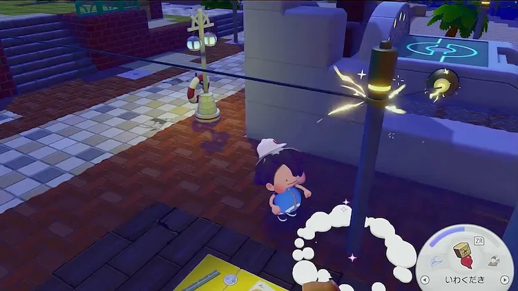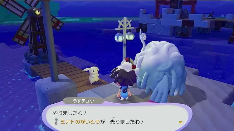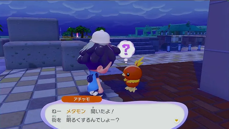 街を明るくするだいじなおねがいごとが開始されたら、ニャースに話しかけて街中の街灯に灯りを灯すことをおねがいされる。