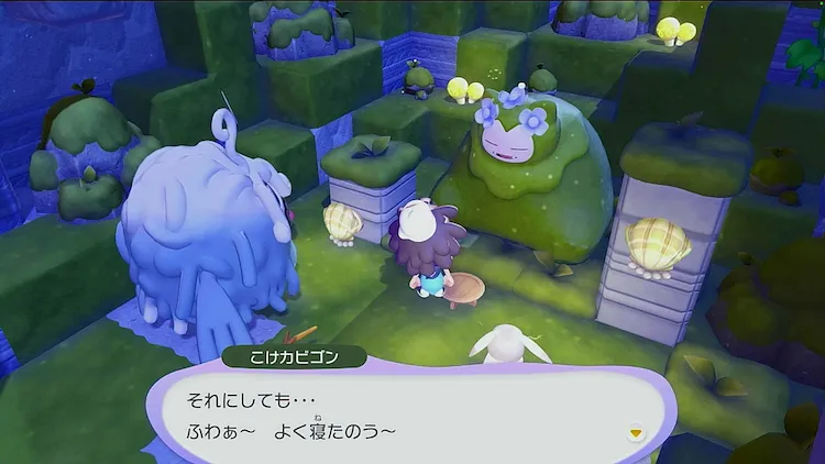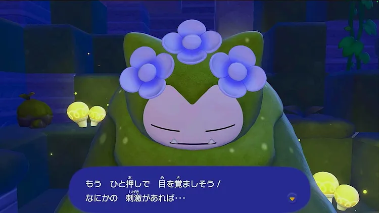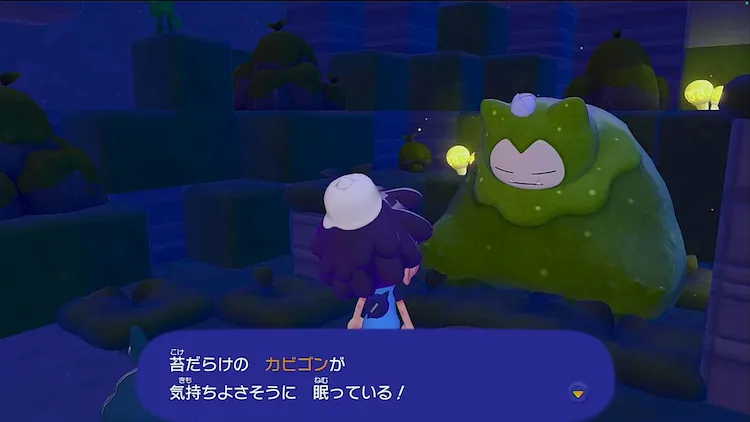 中央付近にある洞窟へ向かうと、コケむしカビゴンが寝ているので話しかけよう。