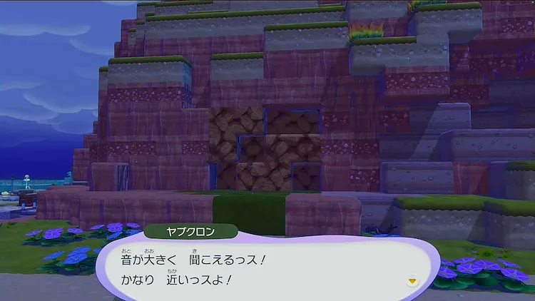 ふきだしが出ているヤブクロンに話しかけると、マップ中央の方角から変な音がするので一緒に調べに行って欲しいとおねがいごとをされる。