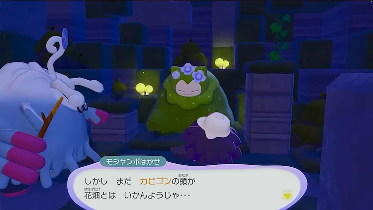 2つのおねがいごとを叶えたら、一度カビゴンの様子を見るために洞窟に戻ってモジャンボに報告しよう。