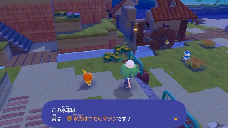 水車(水力はつでんマシン)はカビゴンの洞くつの東側の小屋近くに設置されている。