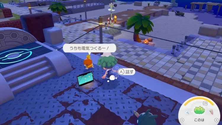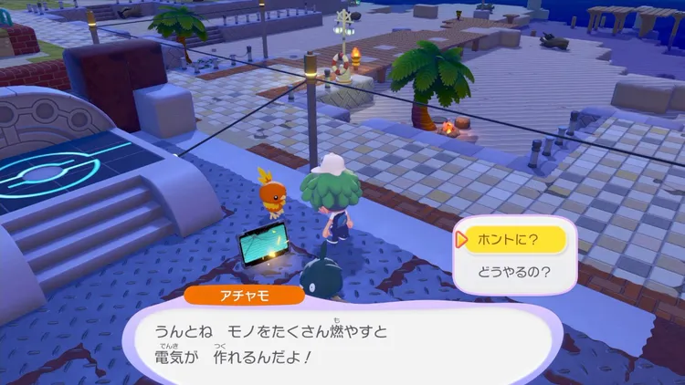 パモやメリープなどの得意なことに「はつでん」があるポケモンを連れていき、街中にある街灯を複数箇所点けて回ろう。
