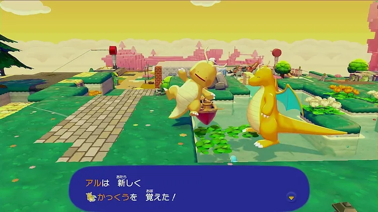 カイリューに話しかけると、生息地を作ってくれたお礼として「かっくう」のやり方を教えてくれる。