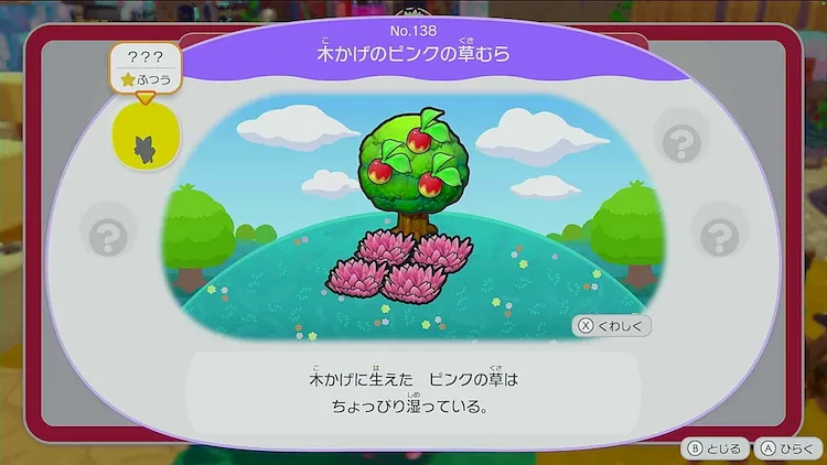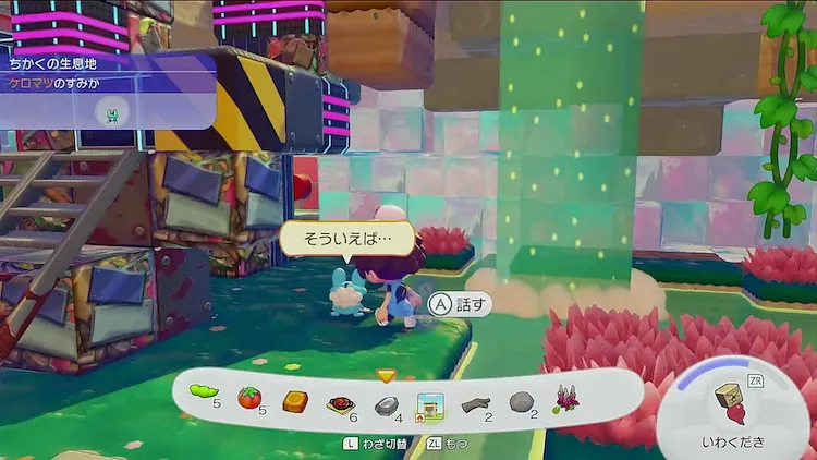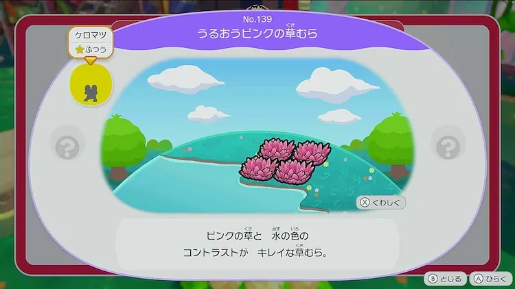 ケロマツに戻ってきてもらうため、生息地「うるおうピンクの草むら」を作ろう。