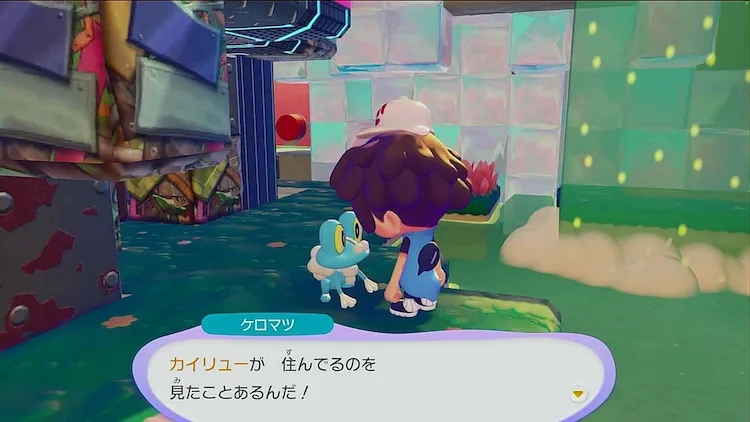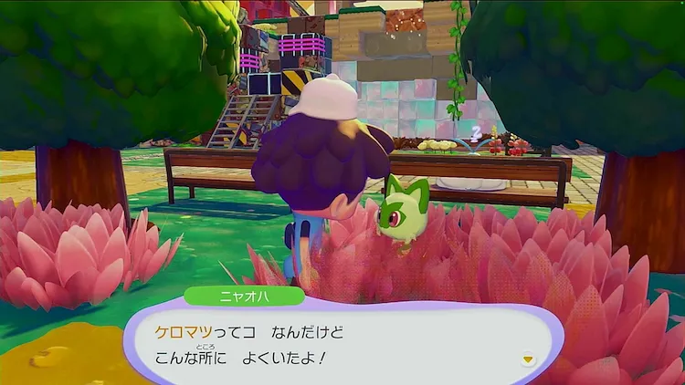ふきだしが出ているニャオハに話しかけると、ケロマツに戻ってきてもらうための生息地を教えてもらえる。