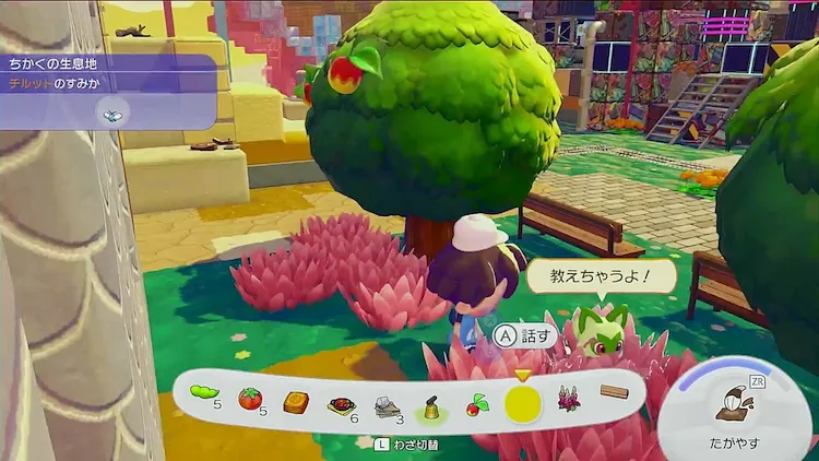 家を建てたら、今度はポケモンたちに戻ってきてもらうため、「木かげのピンクの草むら」を作ろう。