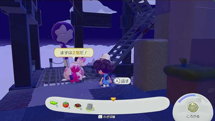 リフトのりばを設置するための場所までデカヌチャンについていき、デカヌチャンにふきだしが出たら話しかけよう。