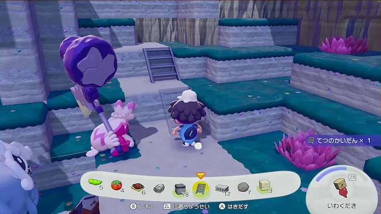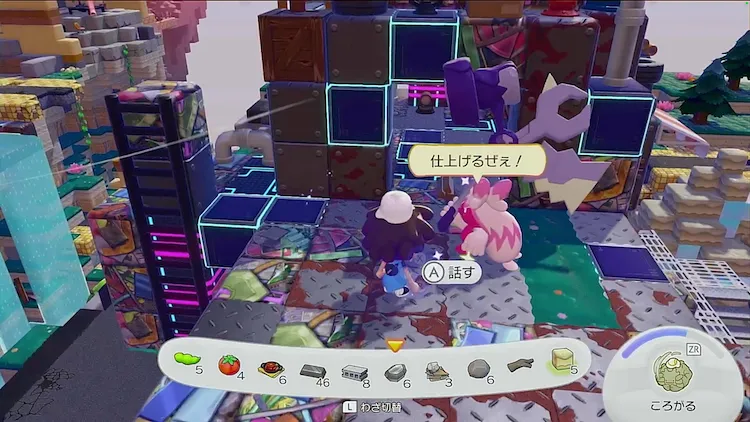 「つぶす」が得意なポケモンをコンクリートミキサーのところへ連れてくると、入れた材料を加工してくれる。