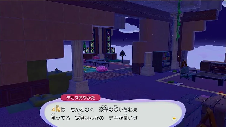 登った先の大きなビルの手前で、デカヌチャンにふきだしがでるので話しかけると、ビルの中を見るためにデカヌチャンの後を追うことになる。