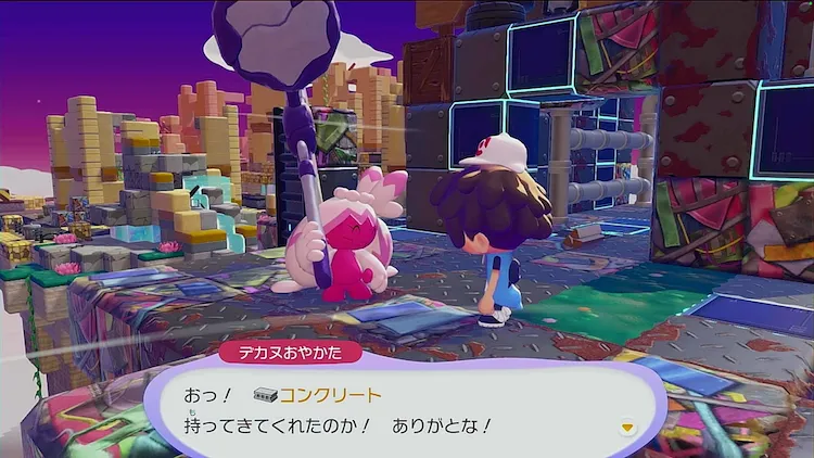リフトを作るために、作成した「コンクリート」6個をデカヌチャンに渡してあげよう。