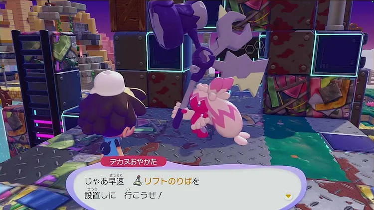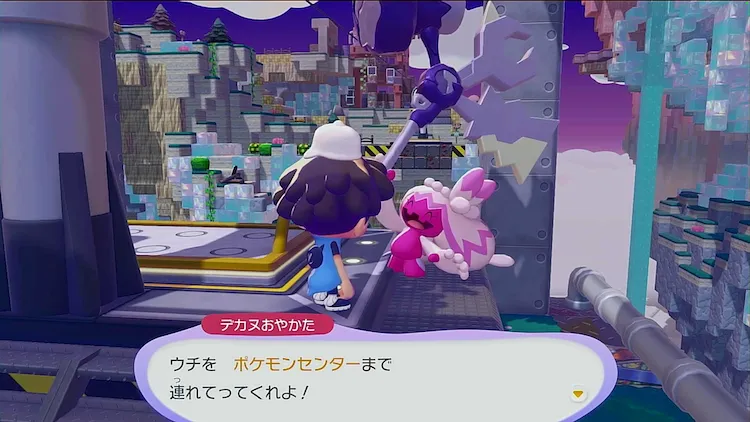 デカヌチャンを連れて設置したリフトに乗り、ポケモンセンターの前までいこう。