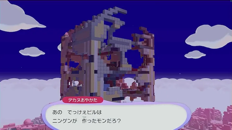 ビルの各階で会話が終わると、デカヌチャンがビルの入り口に戻るので、話しかけるとビルけんちくキットが設置される。