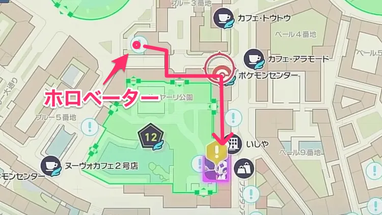 - 暴走する可能性があるユキメノコのところにいく・サイド「お気に入りのホロベーター」で解放したホロベーターから屋根をつたって行く