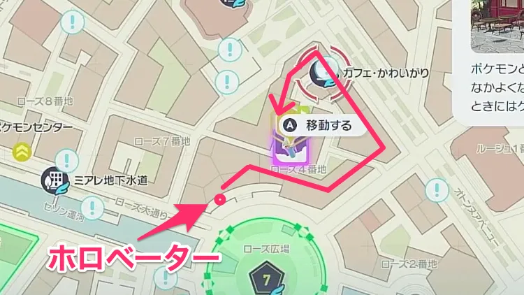 - 暴走する可能性があるチルタリスのところにいく・ローズ広場周辺のホロベーターから屋根をつたって行く