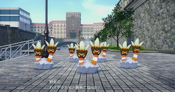 依頼を受け、カメテテに話しかけることでバトルが発生する。カメテテ5匹と同時に戦う群れバトルになるため、弱点を突くなど長期戦にならないように戦おう。