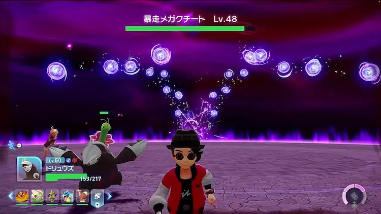 暴走メガクチートの大技は戦闘エリアの外に移動し、フェアリータイプの球を大量に放ってくるものとなっている。