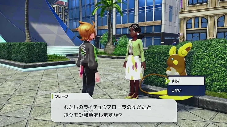 依頼人のクレープとのバトルはライチュウ1匹しか使うことができない。こだわりがなければサイドミッション「世界一ピカチュウ決定戦」で使用したピカチュウを進化させて勝負しよう。