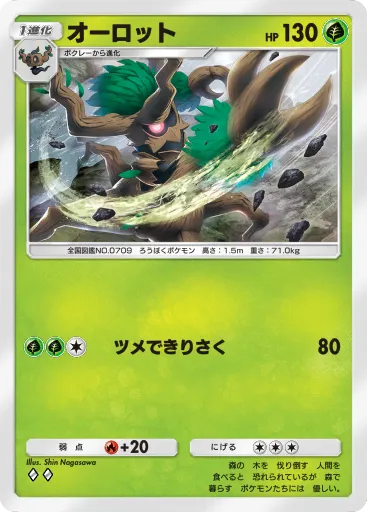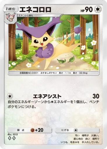 エネルギーの付け替えが可能な2進化の伝説ポケモンであり、ベンチにいる超タイプのポケモンに付いている超エネルギーを、バトル場のポケモンに付け替えることができる性能を持つ。他カードとの組み合わせでどこまでやれるかに注目。