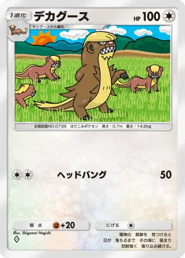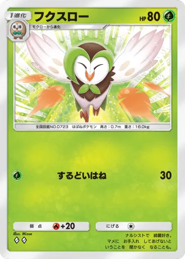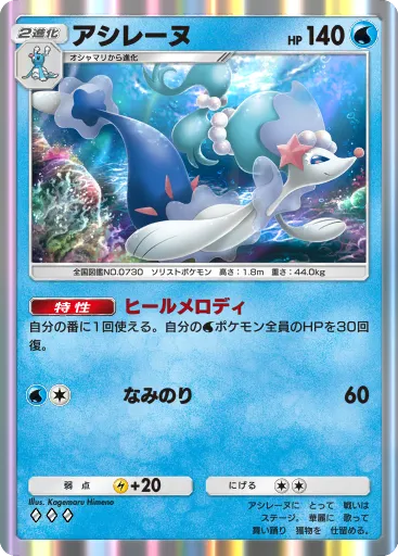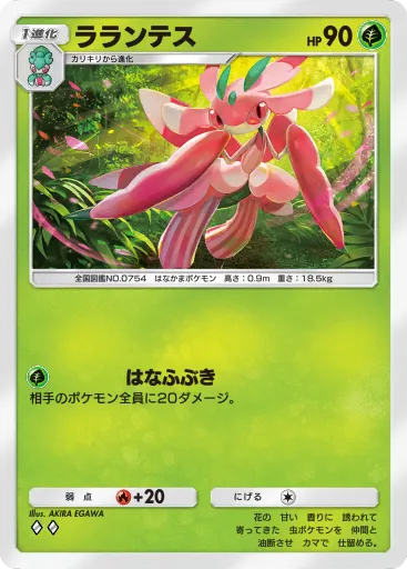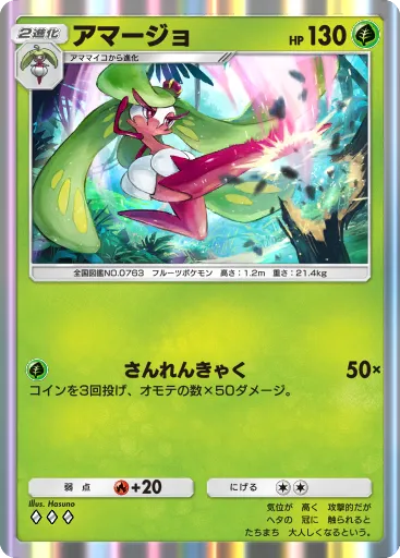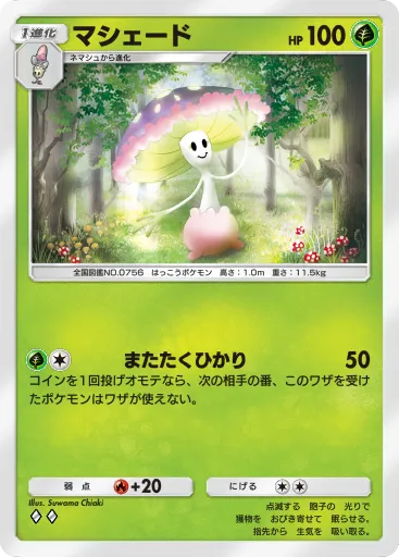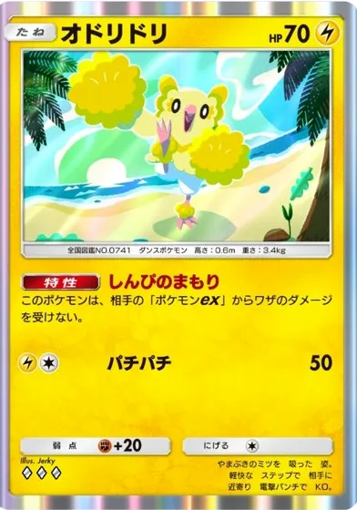 2エネルギーで120ダメージを出せ、「ふしぎなアメ」で早期に起動できた場合は驚異的な制圧性能を有している。特性によって逃げエネの重いポケモンと組ませることもできるので、多くの組み合わせが誕生してくるだろう。