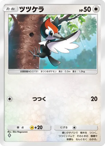 自分の手札から2進化ポケモンを1枚選び、そのポケモンへと進化する自分の場のたねポケモンにのせ、1進化をとばして進化させる。(最初の自分の番や、出したばかりのポケモンには使えない。)