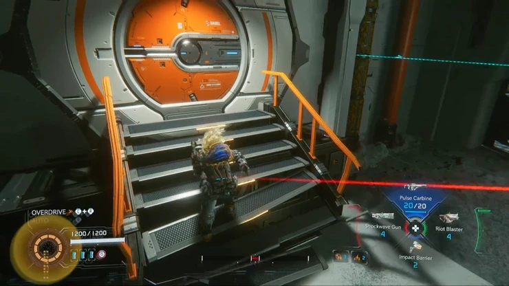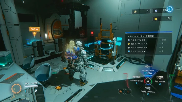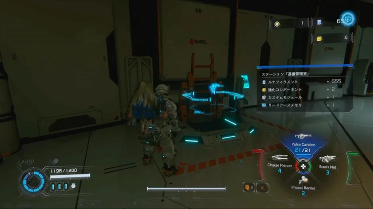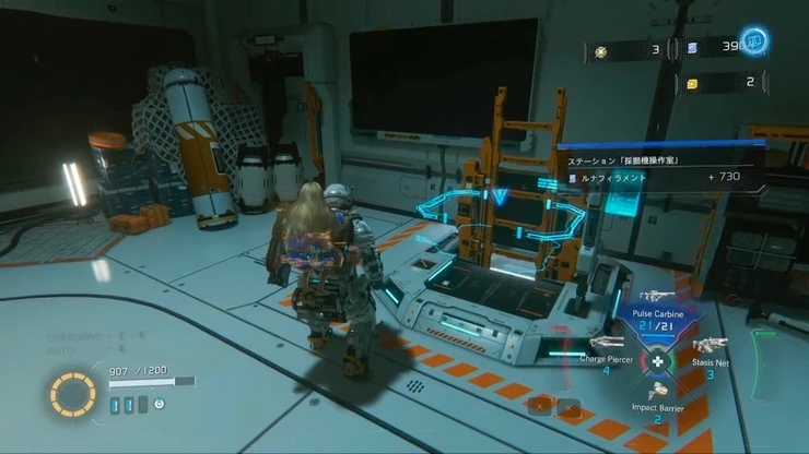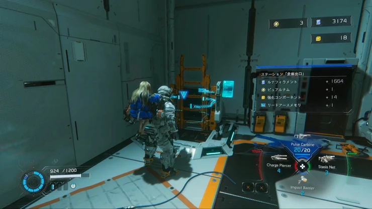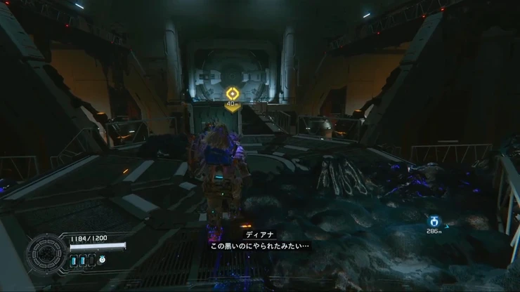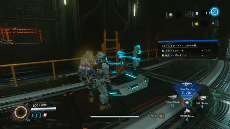 ルナディガーから逃げた先の施設で敵を倒し先へ進むと、先程のエリアの上層部の階段へとたどり着く。