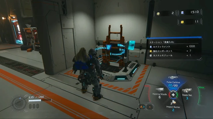 左側に見えるコンテナエリアでは、コンテナを登った先でカスタムモジュールを入手できる。進行には関係ないが、入手しておこう。