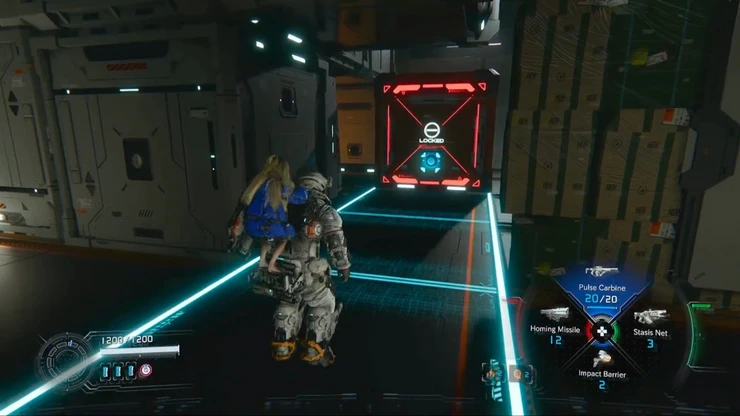 次のエリアでは、コンテナをハッキングで移動させて通路を確保していく。