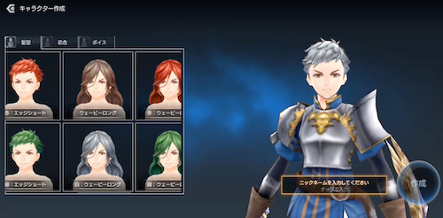 ゲーム開始前にキャラクター作成を行います。「ソルジャー」「プリースト」「メイジ」という3つの職業から好きなものを選択した後、プレイヤーの分身たるアバターを作成していきます。髪型・肌色・ボイスといったパーツにより個性豊かなキャラを作ることが可能となっており、マルチプレイが充実した本作だからこそ活きるキャラメイキングへの注力が感じられます。