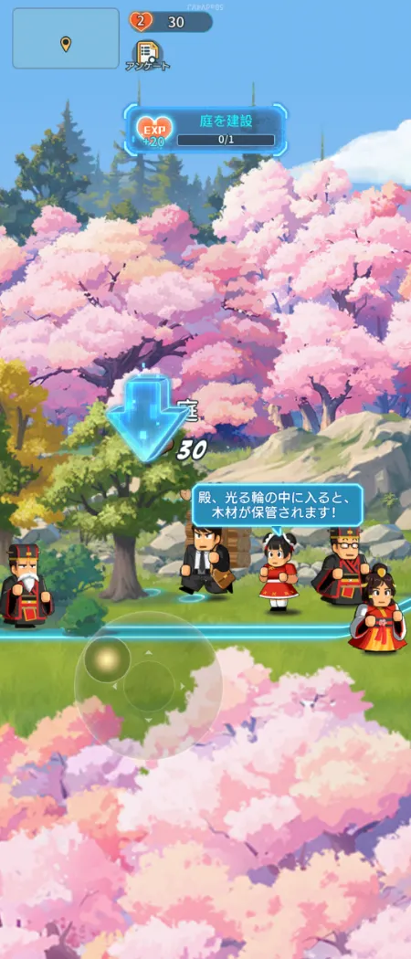 メイン任務だけでなく民からの「いいね」でもEXPを獲得することが可能。木材と小麦の採取や、木板と肉まんの製造を一定数行うと、民が「いいね」や宝箱をプレゼントしてくれます。