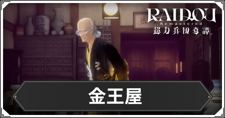 ライドウリマスターの「金王屋」について掲載しています。金王屋でできることをまとめていますので、ライドウリマスター(RAIDOU Remastered: 超力兵団奇譚)の攻略にお役立てください。
