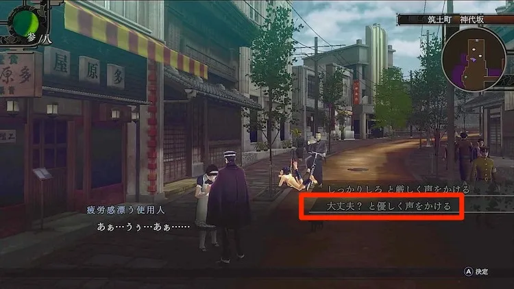 疲労感漂う使用人との会話で「大丈夫? と優しく声をかける」を選ぶ