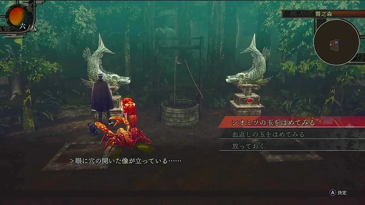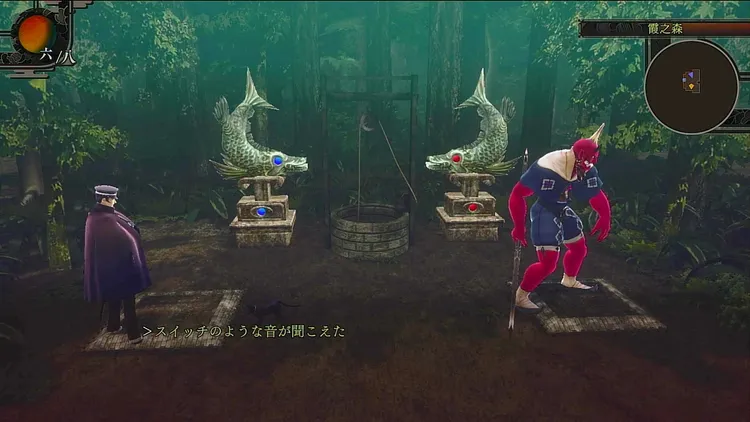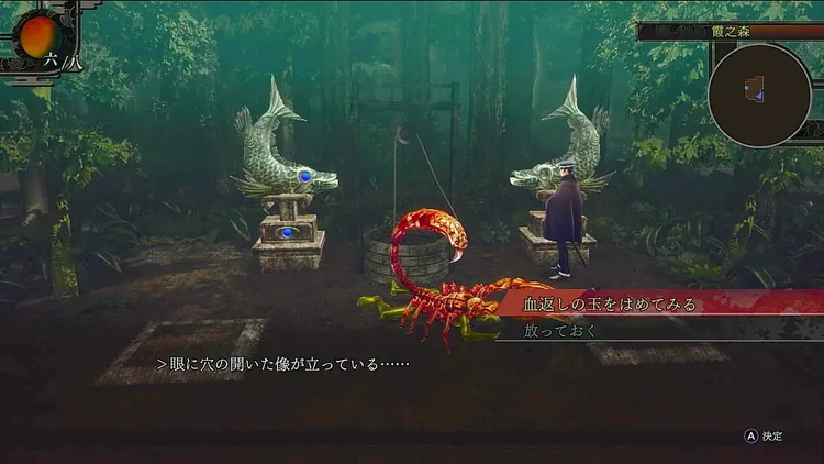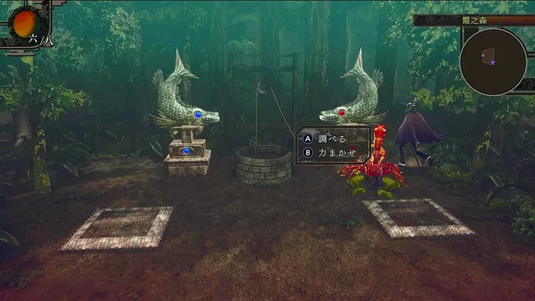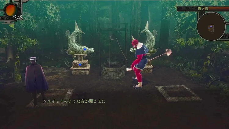 赤い目の魚の像の右側から捜査スキル「力まかせ」を使う